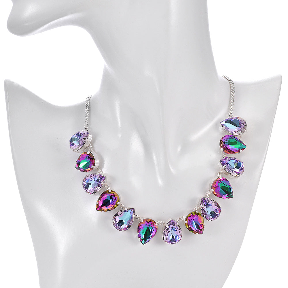 The Mystic Violet Goddess Teardrop Necklace features regal violet teardrop crystals that glisten like captured twilight, each facet shimmering with the mysteries of the cosmos.