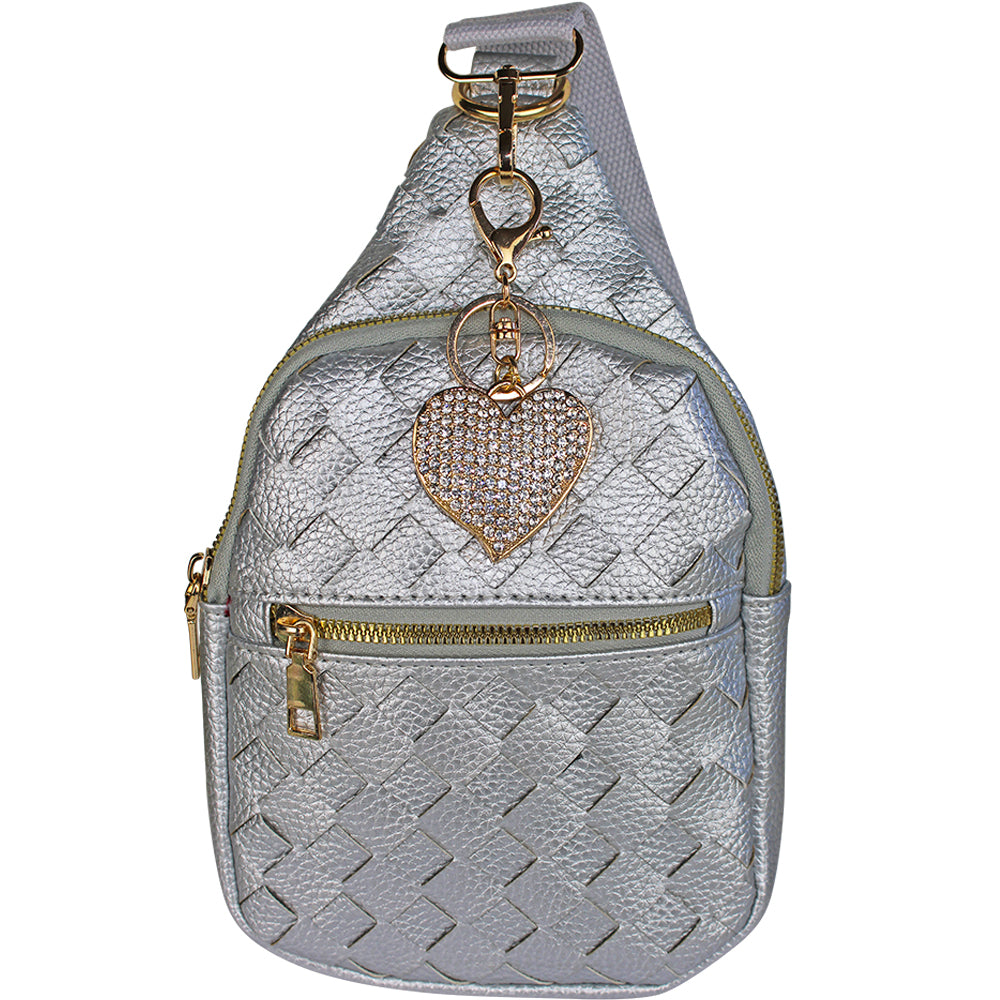 Pixie Pouch Braided Faux Leather Sling Bag with Free Sweet Heart Keychain Charmer (Silvertone)