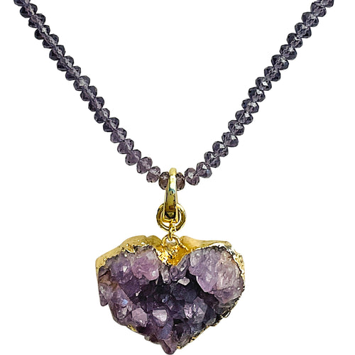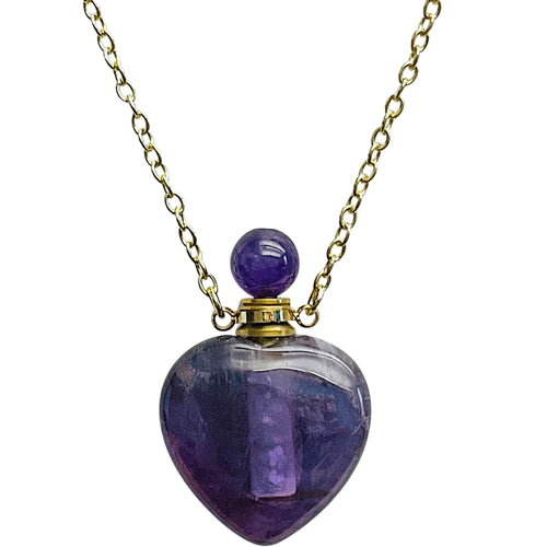 "One Of A Kind" Precious Love Amethyst Quartz Crystal Vial Necklace (Goldtone)