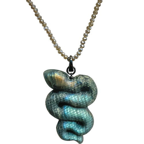 "One Of A Kind" Snake Charmer Labradorite Open Ring Charm Beaded Necklace (Hematite)