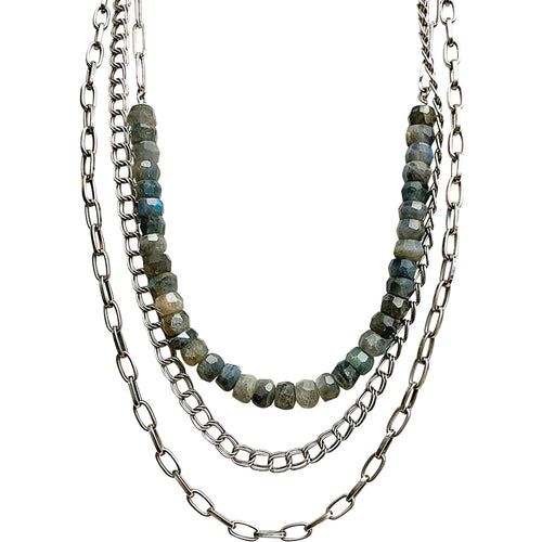 "One Of A Kind" Lucious Links 3 Strand Labradorite Necklace (Silvertone)