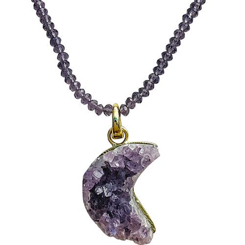 "One Of A Kind" Moon Dreamer Amethyst Open Ring Charm Beaded Necklace (Goldtone)