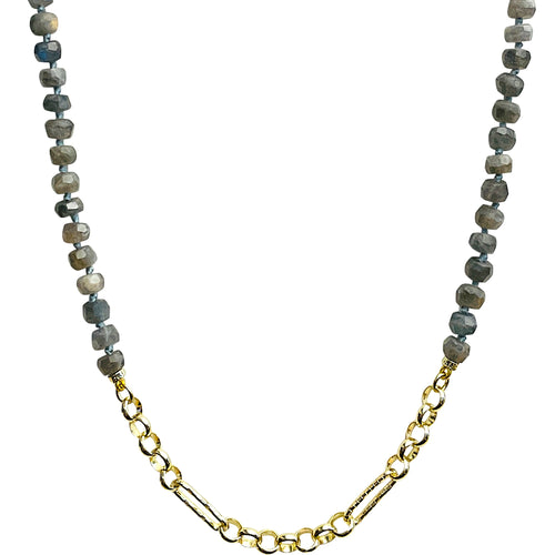 "One Of A Kind" Lucious Labradorite Chain Necklace (Goldtone)