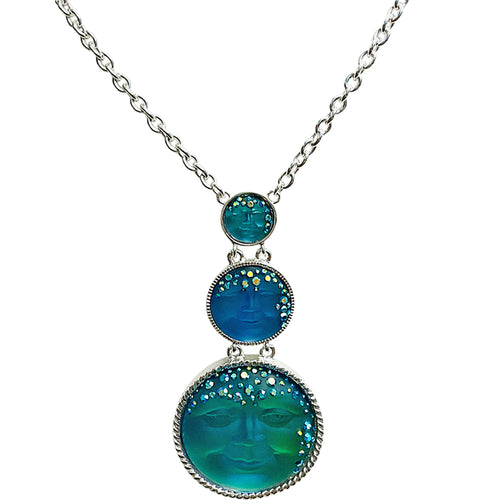 "One Of A Kind" Mystic Goddess Seaview Moon Necklace (Sterling Silvertone)