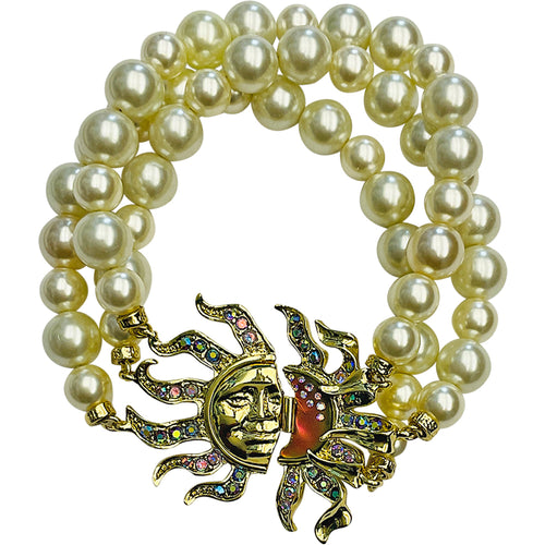 "One Of A Kind" Glass Pearl Pearl Mystic Moon Shadow Bracelet (Goldtone)