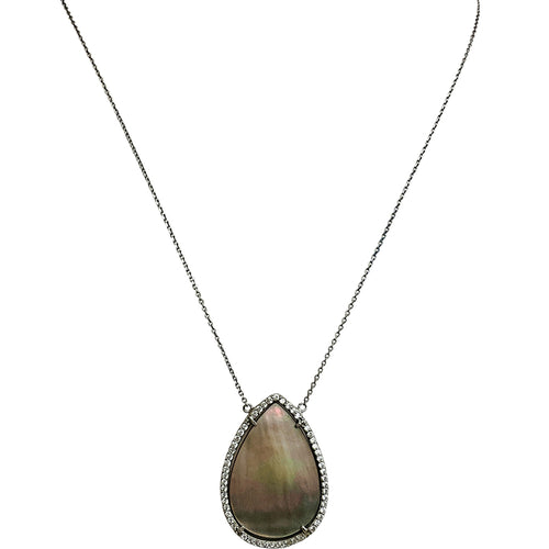 "One Of A Kind" Mother Of Pearl Teardrop Necklace (Sterling Silver)