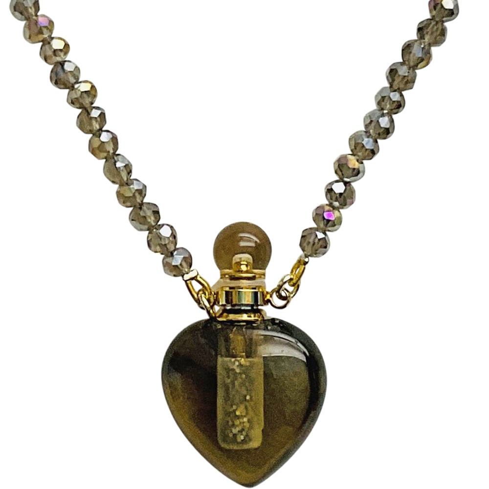 "One Of A Kind" Precious Love Smokey Topaz Quartz Crystal Vial Necklace (Goldtone)