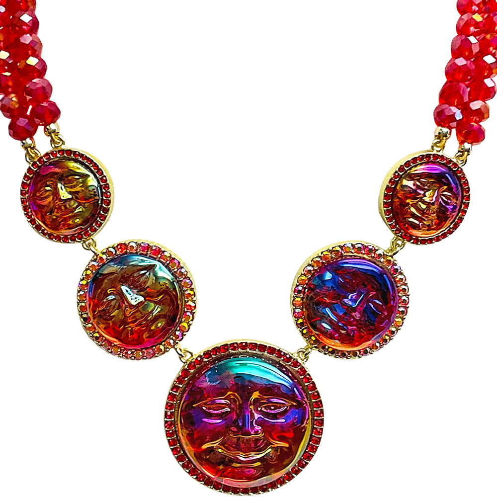" One Of A Kind" Seaview Water Moon 5 Stone Beaded Necklace (Goldtone/Red)