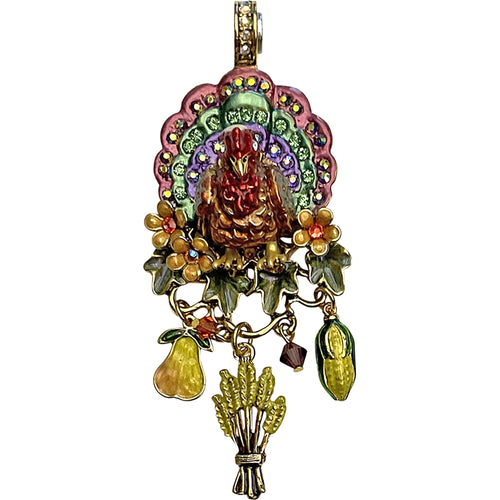 "One Of A Kind" Turkey Time Pin Pendant With Chain Necklace (Goldtone)