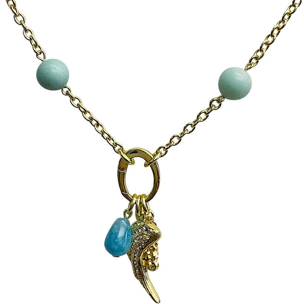 "One Of A Kind" Angel Number 3 Amazonite Open Ring Charm Necklace -“DIVINE CREATIVE GUIDANCE” (Goldtone)