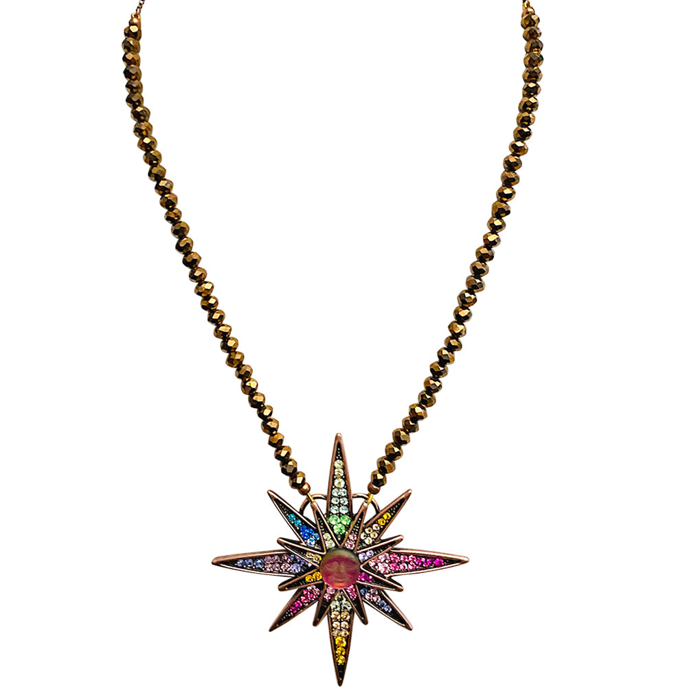 "One Of A Kind" Glass Seaview Moon Super Star Beaded Slide Necklace (Copper Ox)