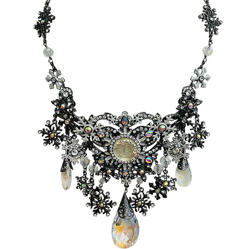 "One Of A Kind" Couture Snow Flurries Glass Seaview Moon Statement Necklace (Hematite)
