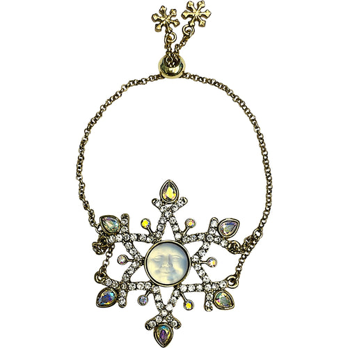 "One Of A Kind" Couture Snow Flurries Glass Seaview Moon Pull Bracelet (Goldtone)