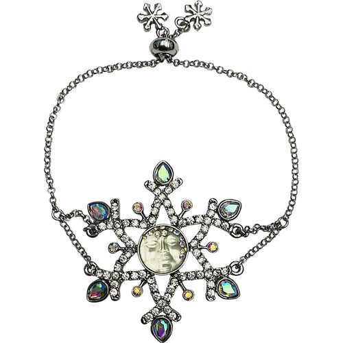 "One Of A Kind" Couture Snow Flurries Goddess Seaview Moon Pull Bracelet (Silver Ox)