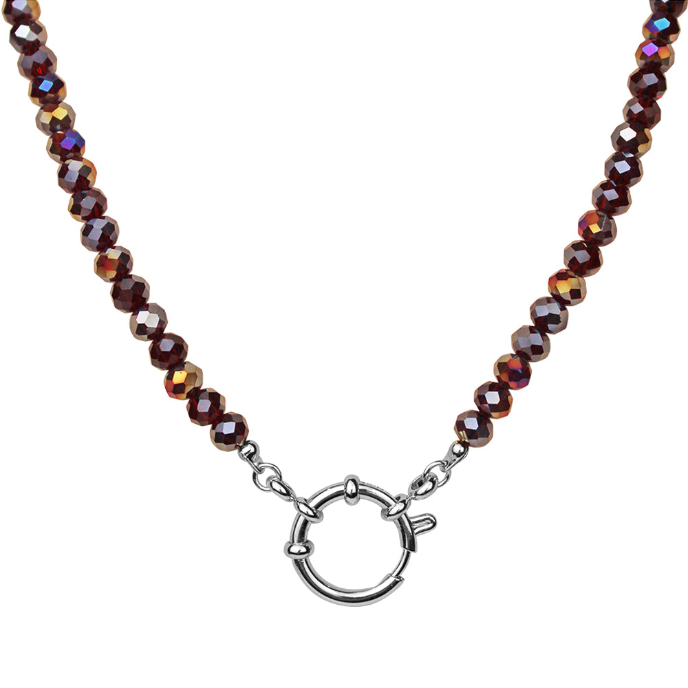 Crystalized 6mm Beaded Sailor Clasp 18" Charm Necklace (Sterling Silvertone/Red AB)