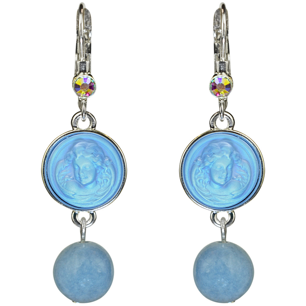 Enchanted Glass Dream Angel & Angelite Leverback Earrings (Sterling Silvertone/Lt. Sapphire)