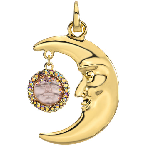 Dancing Starlight Moon Pin Pendant (Goldtone)