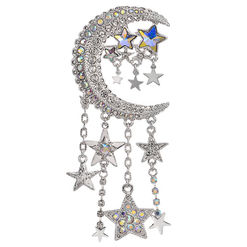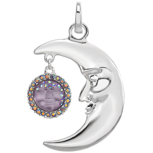 Dancing Starlight Moon Pin Pendant (Sterling Silvertone)
