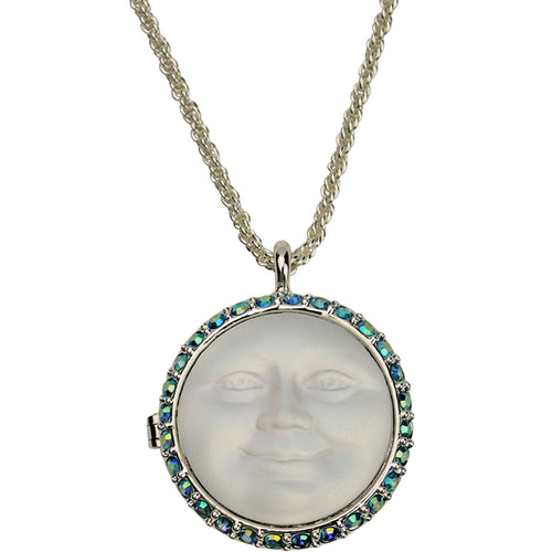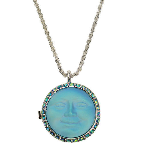 Love Never Dies Glass Seaview Moon Locket Necklace (Sterling Silvertone/Aqua AB)