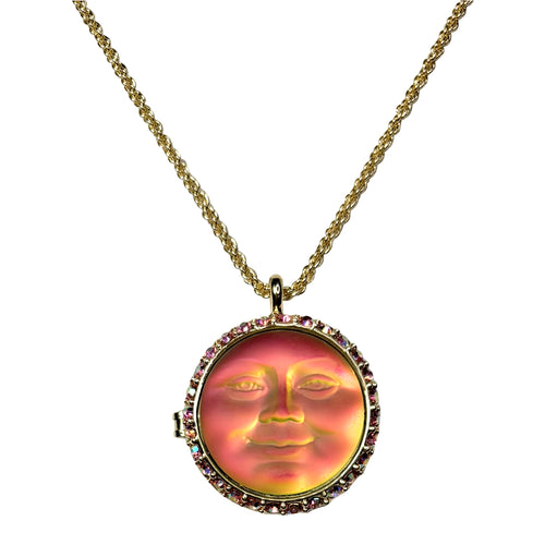 Love Never Dies Glass Seaview Moon Locket Necklace (Goldtone/Iridis)
