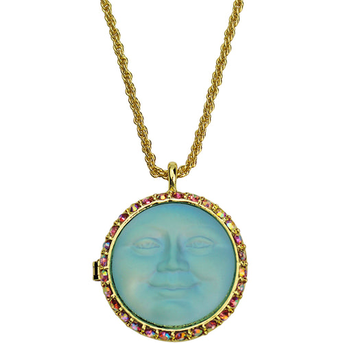 Love Never Dies Glass Seaview Moon Locket Necklace (Goldtone/Aqua AB)