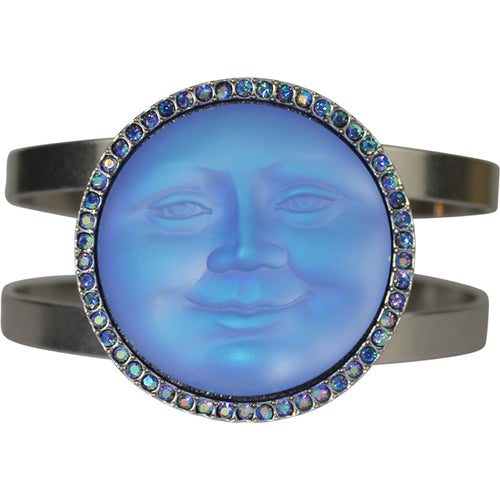 Glass Seaview Moon 35mm Cuff Bracelet (Matte Silvertone/Lt. Sapphire AB)