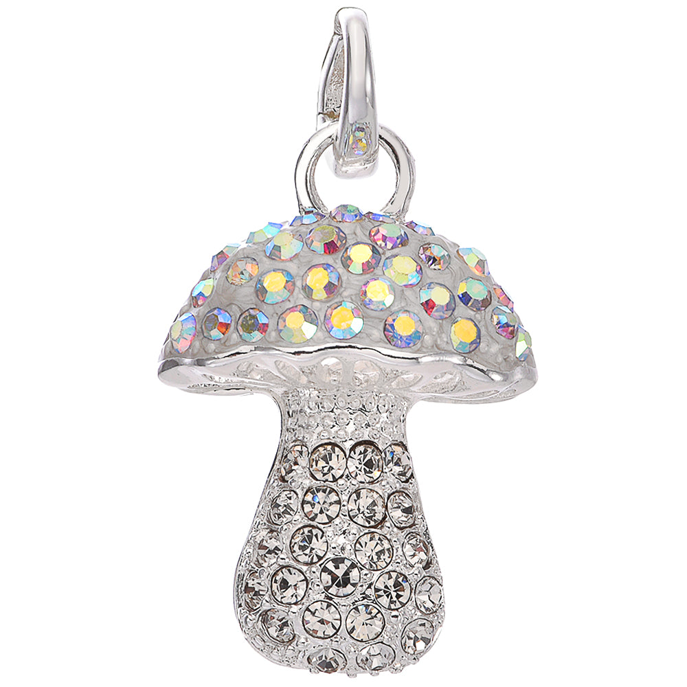 Crystal Magic Mushroom Open Ring Charm (Sterling Silvertone)