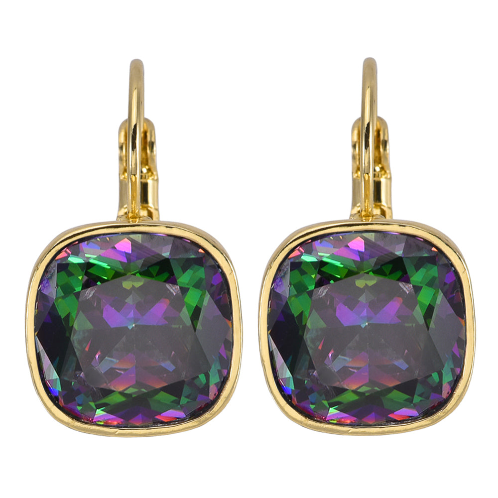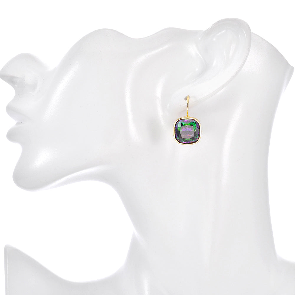 These lever back earrings cradle cushion-cut stones that shimmer with the shifting magic of twilight gardens, where amethyst dusk melds into emerald dew.
